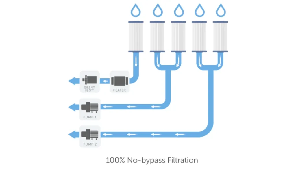 This pump runs 24 hours a day, silently circulating and filtering the water—using less energy than a 40-watt light bulb. It delivers better, continuous water care while keeping energy costs low.