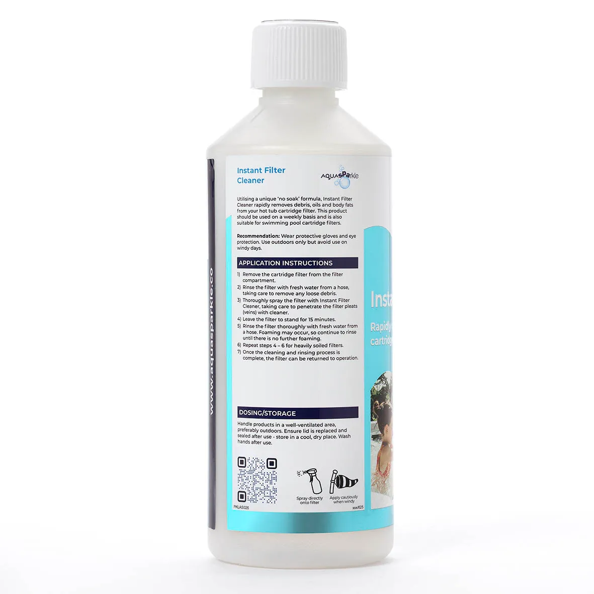 AquaSparkle Instant Filter Cleaner is a fast acting solution designed to clean hot tub cartridge filters without the need for soaking. Its unique no soak formula rapidly breaks down grease, oils, and body fats that build up during regular hot tub use.