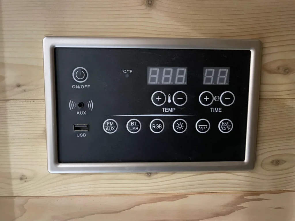 Take full command of your sauna experience with our intuitive digital control panel. Easily adjust temperature, set session timers, and customize your ambiance with RGB lighting options. Enjoy versatile audio playback by connecting via Bluetooth, USB, AUX, or even FM radio—your music, your way. The user-friendly interface puts everything at your fingertips, ensuring a seamless and personalized relaxation session every time. Whether you prefer soothing heat, vibrant mood lighting, or your favorite tunes, complete control is just a touch away.