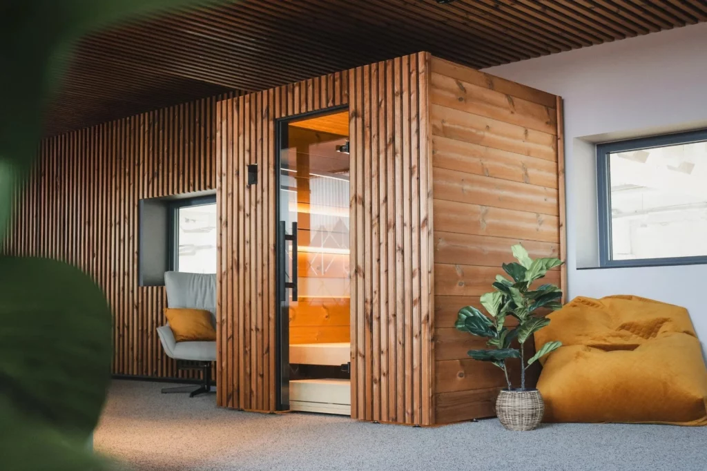 The gentle heat of a sauna helps calm the nervous system and reduce stress hormones like cortisol. The quiet, warm environment encourages deep relaxation and mindfulness.