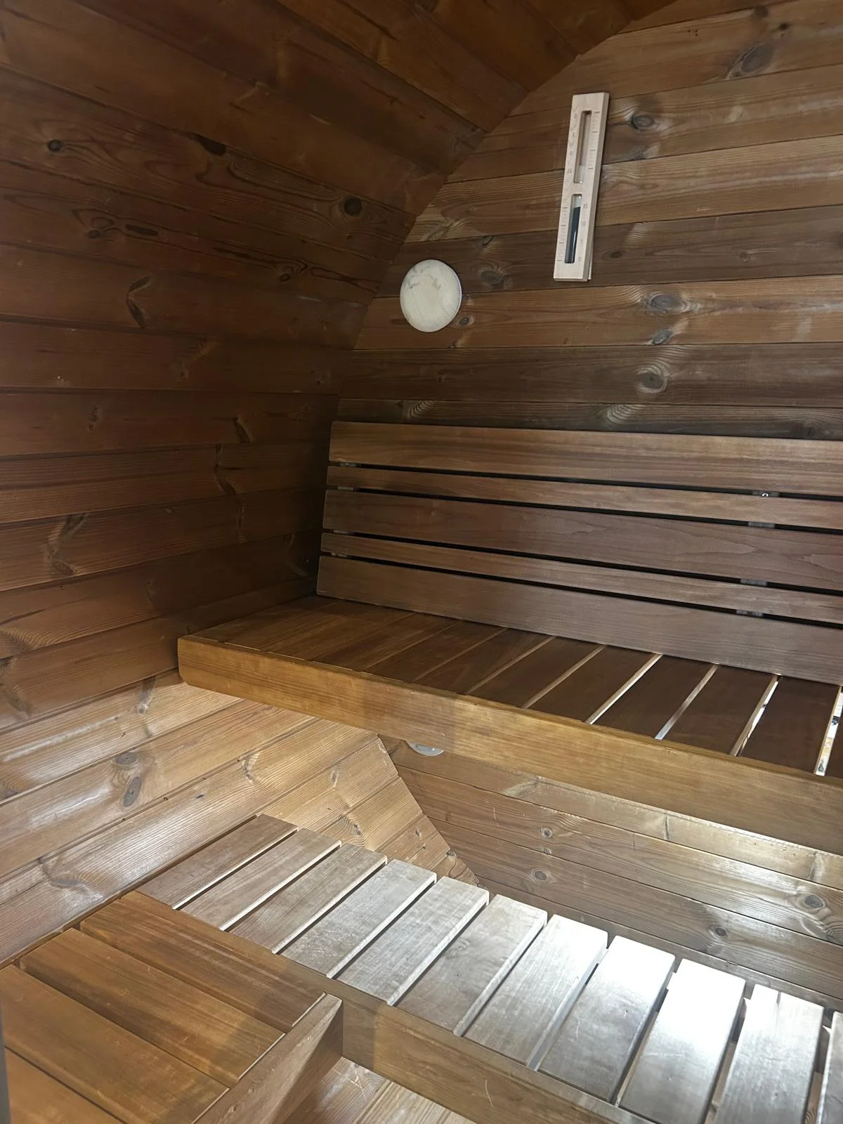 Our interior uses Treated Thermowood, heat-modified for exceptional stability in high heat and humidity—so it won’t warp, cup, or exude resin. The low-moisture, knot-light timber dries quickly between sessions and stays smooth to the touch, enhancing comfort and hygiene. Its rich, caramel tone brings a warm, spa-like feel while requiring minimal maintenance for years of use.