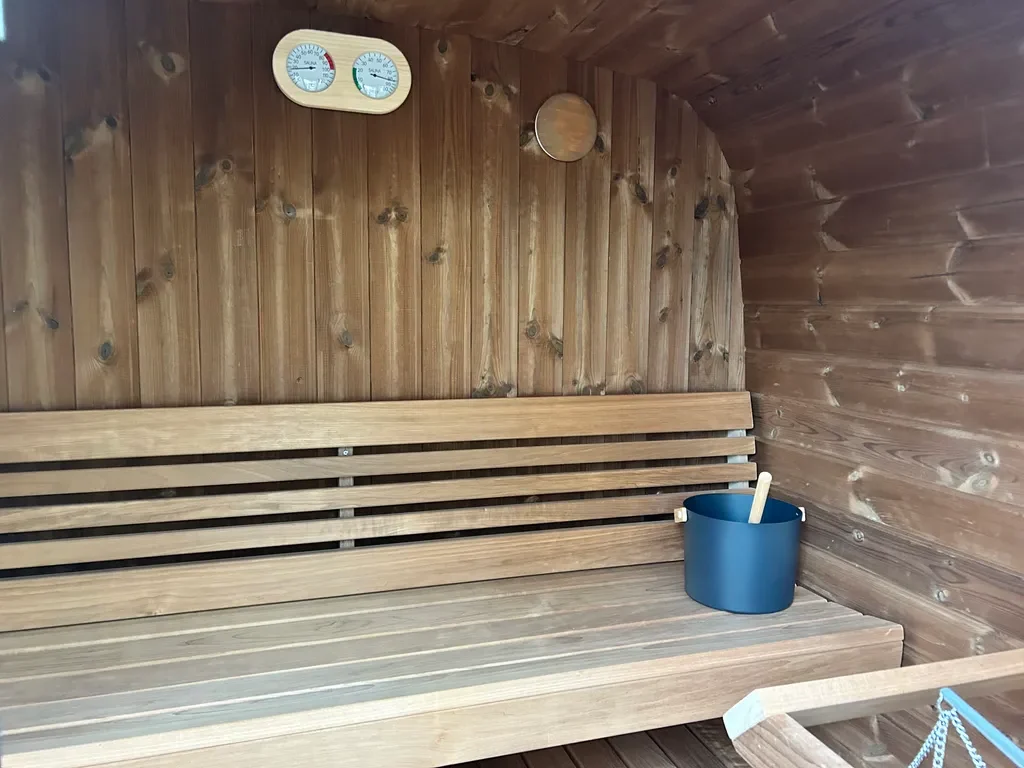 For added durability and structural integrity, the sauna cabin is secured with two stainless steel adjustable bands. These provide extra reinforcement, keeping the Thermowood panels firmly in place while allowing for natural expansion and contraction of the timber in Ireland’s changing climate. Stainless steel is corrosion-resistant, ensuring long-lasting strength and a polished finish that complements the sauna’s modern design.