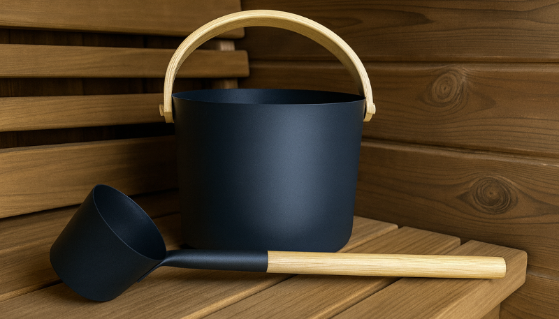 Enhance your sauna sessions with the premium black accessory kit: