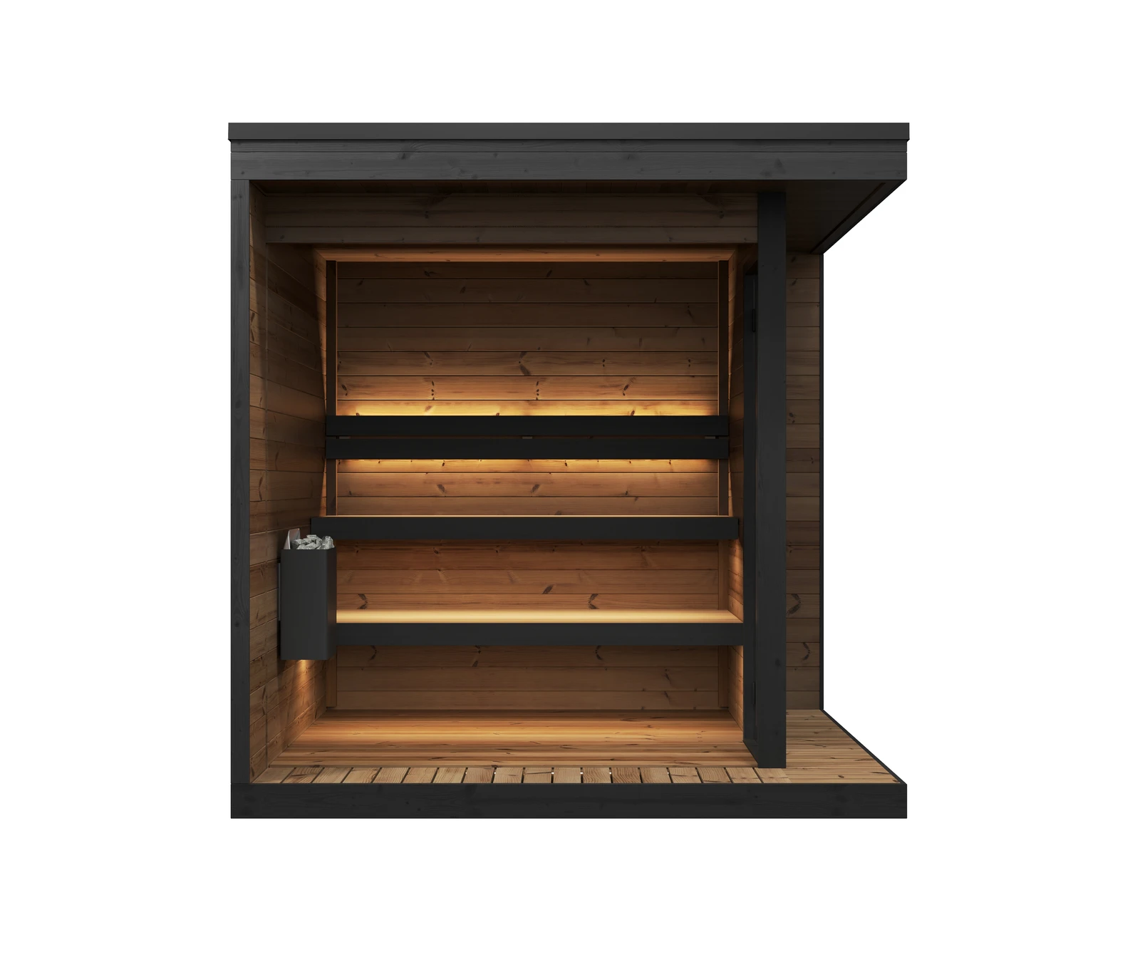 Each Hiki sauna is expertly crafted from premium-grade Thermowood, a sustainably sourced Scandinavian timber that has been heat-treated to withstand the harshest outdoor conditions. Through a natural thermal modification process, the wood becomes highly resistant to moisture, ensuring your sauna maintains its strength and beauty for years to come. Thermowood’s enhanced stability also provides excellent insulation, helping your sauna heat quickly and retain warmth efficiently. Its smooth, refined surface and rich tone give the Hiki sauna a luxurious, contemporary finish that complements any garden or outdoor space.